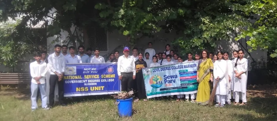 The National Service Scheme (NSS) Unit of GDC, Marheen organized cleanliness Drive in the college, campus on 18-09-2025 in the celebration of SEWA PARV in which the volunteers, students and the staff participated in the drive with dedication under the benign supervision of Prof (Dr) Anupama Gupta, worthy, Principal of the college. The volunteers collected the waste material and cleaned the surroundings of the college. The event was managed by Dr Arun Dev Singh, NSS, Programme Officer, Dr Balbinder Singh, Convener, Sewa Parv, Dr Shallu Rani. The other faculty members who graced the occasion: Prof Manu Saini, Dr Reemi Verma, Dr Sneh and Dr Priti Khajuria.